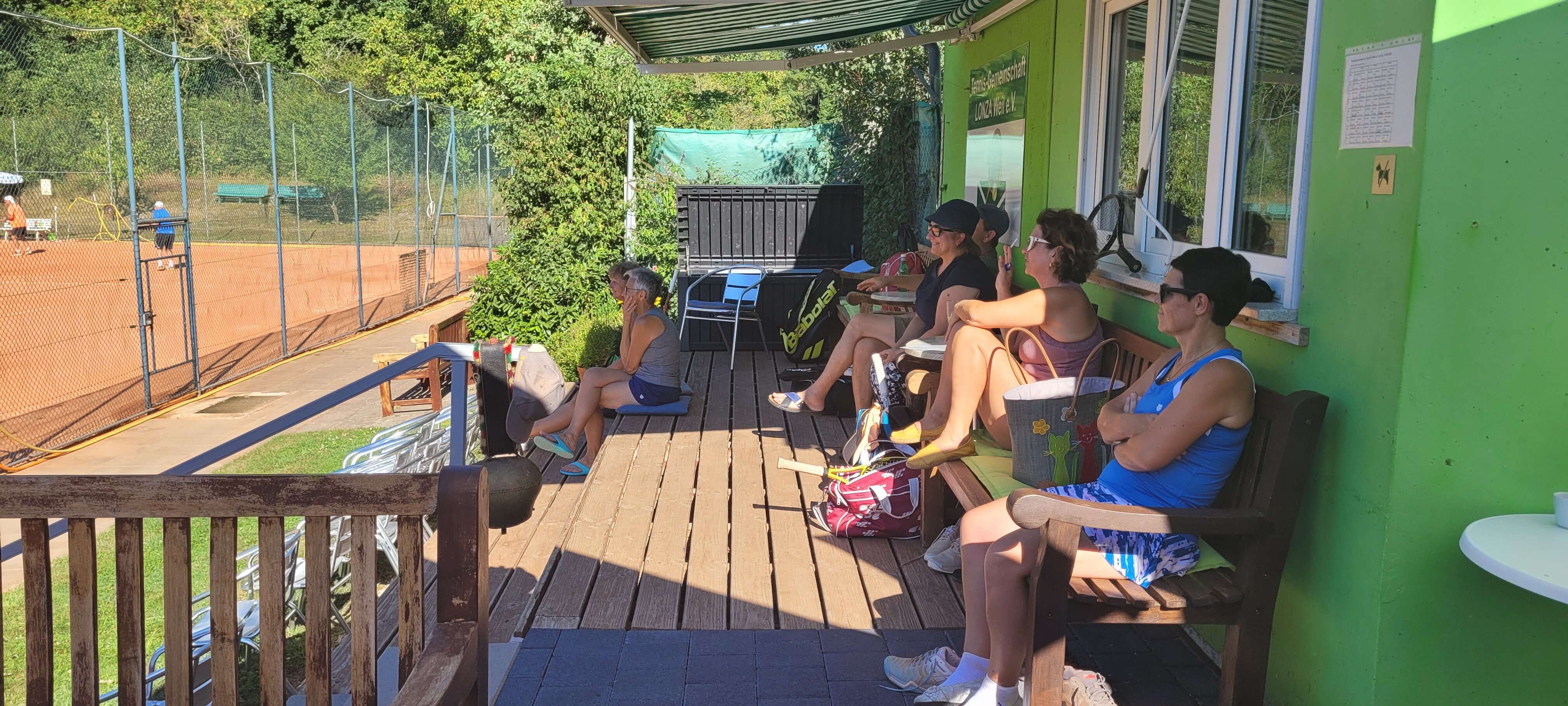 Nach einem ausgezeichnet vorbereiteten Spielplan wurden dann im Intervall von jeweils 30 Minuten viele Doppel- oder Mixed-Matches mit immer wieder wechselnden Partnern gespielt. Da pro Runde maximal 12 Spieler*innen aktiv sein konnten, hatte jeder genügend freie Zeit, um nach abgeschlossenem Spiel die Energie- und Flüssigkeitsdepots wieder aufzufüllen. Bei den fantastischen Temperaturen wurde davon natürlich reichlich Gebrauch gemacht.