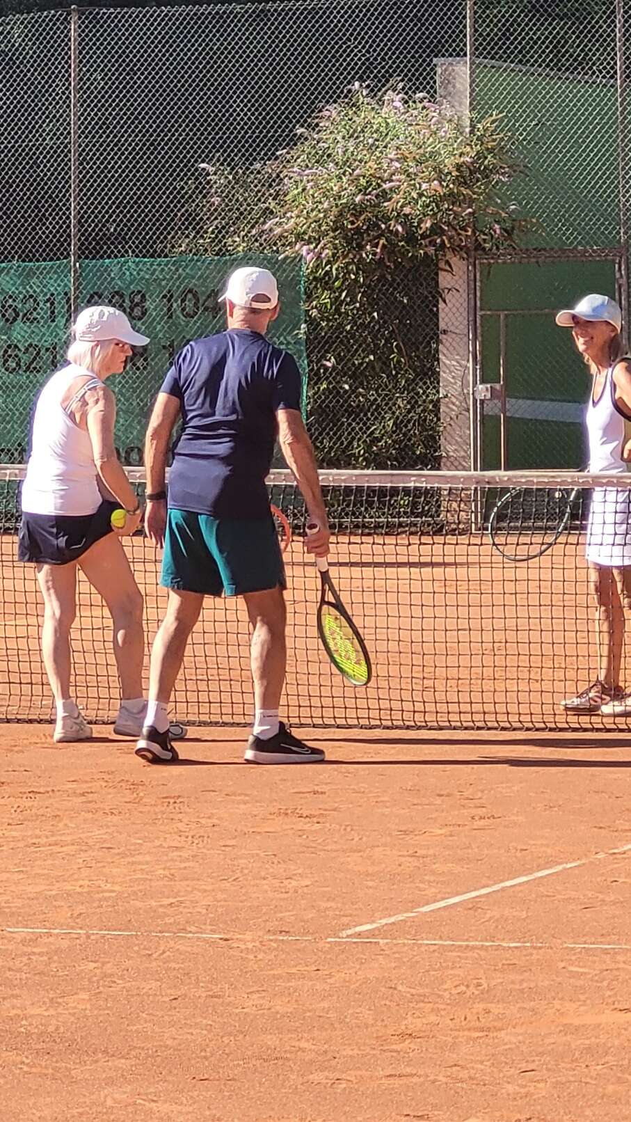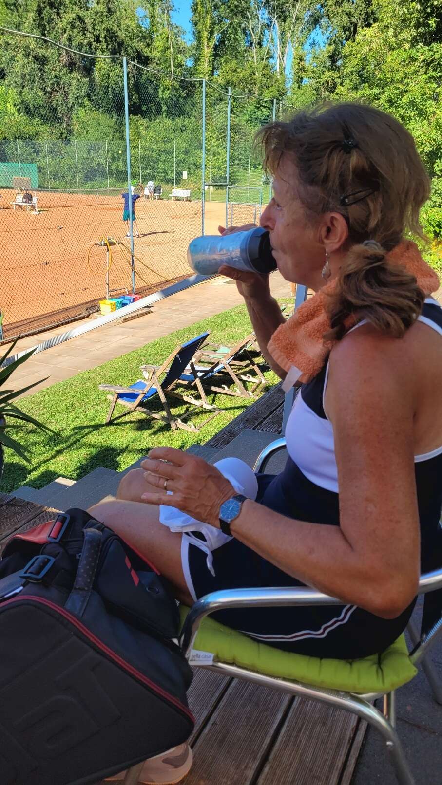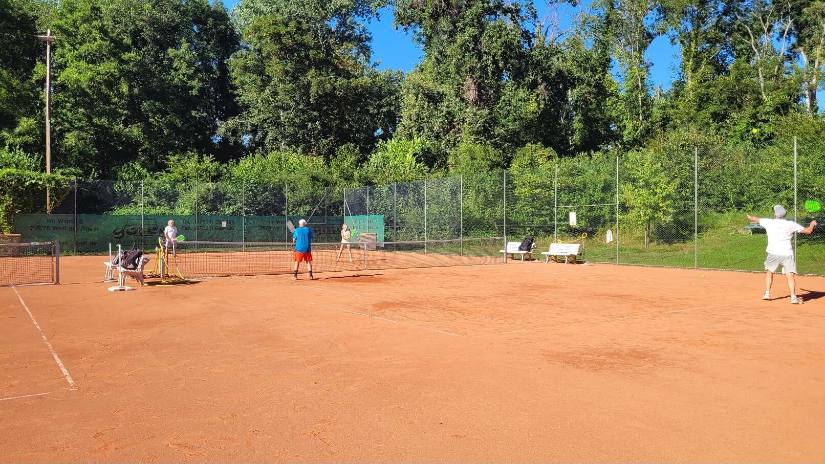 Nach einem ausgezeichnet vorbereiteten Spielplan wurden dann im Intervall von jeweils 30 Minuten viele Doppel- oder Mixed-Matches mit immer wieder wechselnden Partnern gespielt. Da pro Runde maximal 12 Spieler*innen aktiv sein konnten, hatte jeder genügend freie Zeit, um nach abgeschlossenem Spiel die Energie- und Flüssigkeitsdepots wieder aufzufüllen. Bei den fantastischen Temperaturen wurde davon natürlich reichlich Gebrauch gemacht.