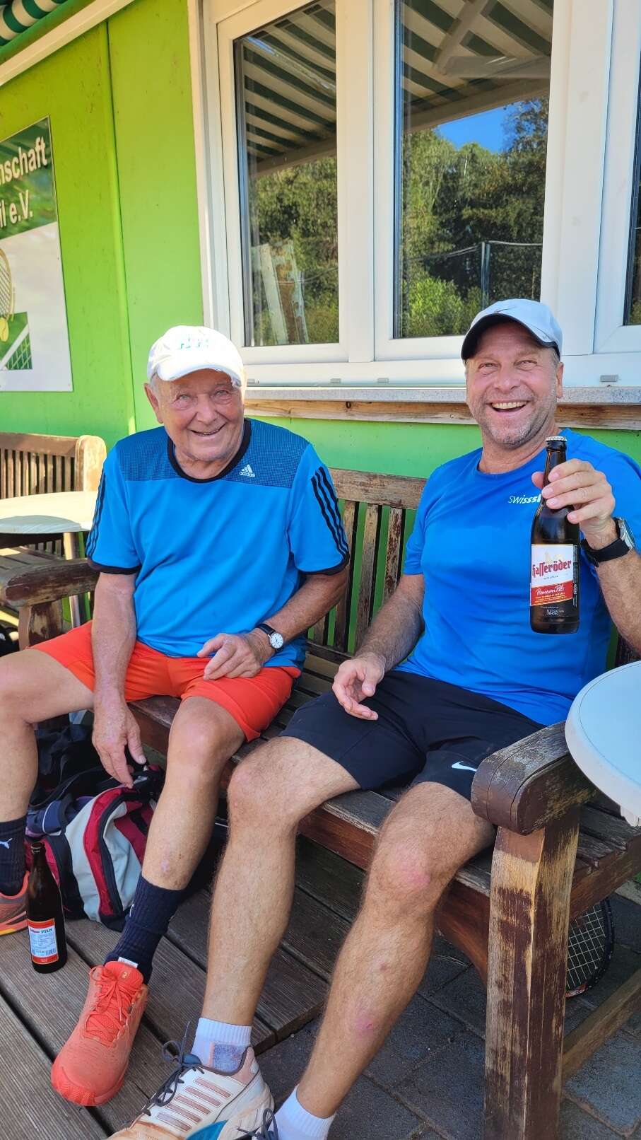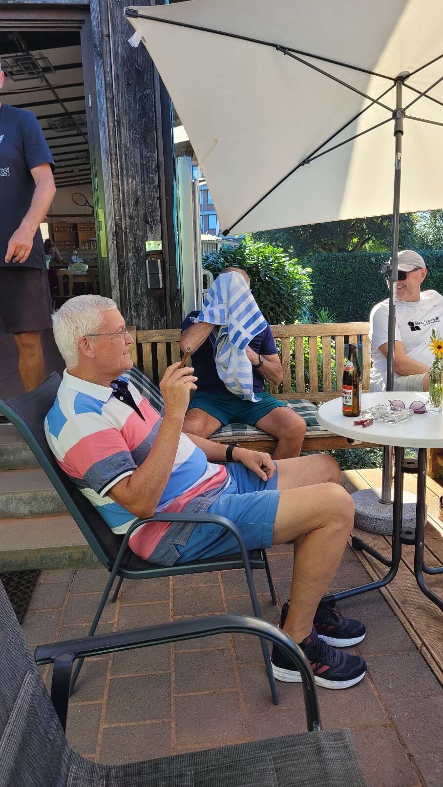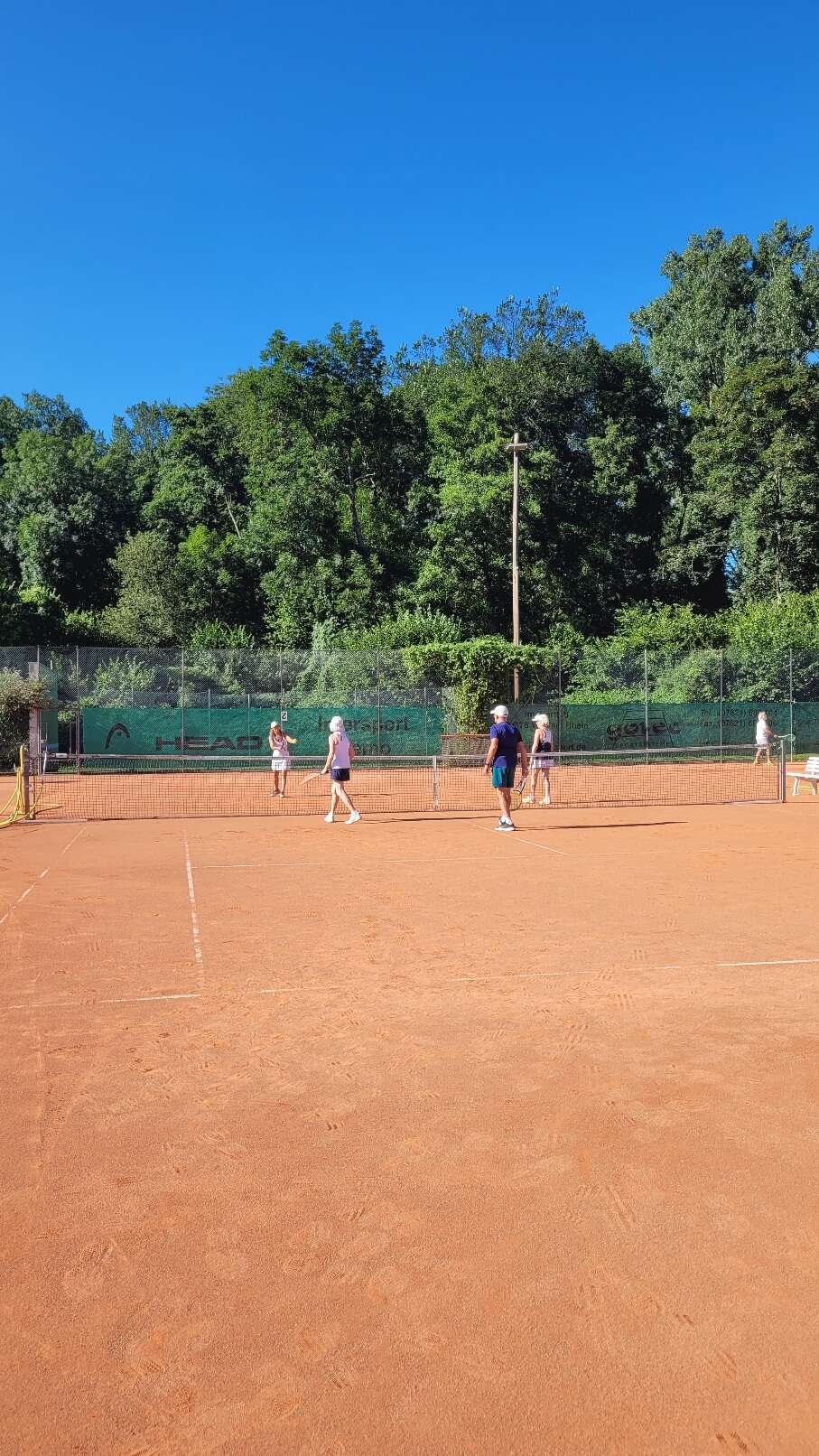 Nach einem ausgezeichnet vorbereiteten Spielplan wurden dann im Intervall von jeweils 30 Minuten viele Doppel- oder Mixed-Matches mit immer wieder wechselnden Partnern gespielt. Da pro Runde maximal 12 Spieler*innen aktiv sein konnten, hatte jeder genügend freie Zeit, um nach abgeschlossenem Spiel die Energie- und Flüssigkeitsdepots wieder aufzufüllen. Bei den fantastischen Temperaturen wurde davon natürlich reichlich Gebrauch gemacht.