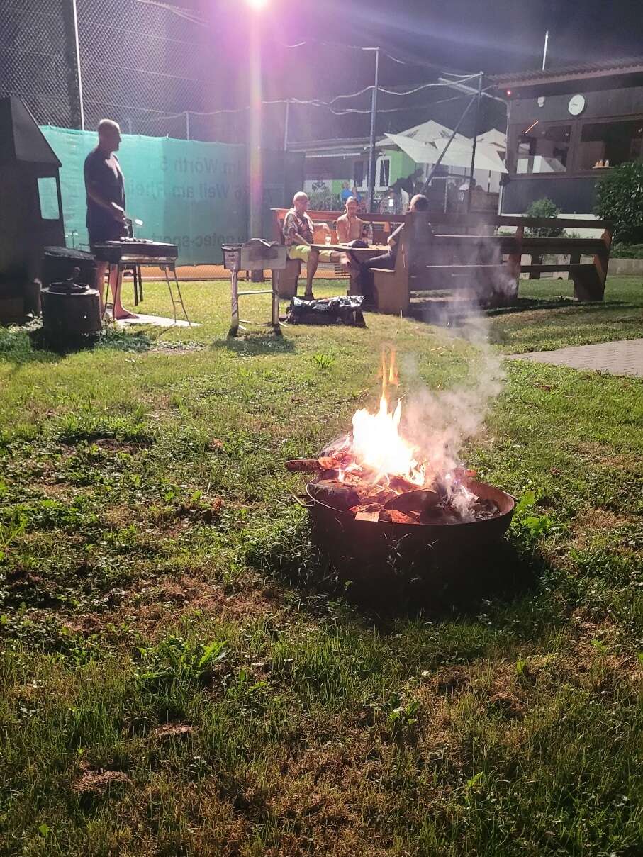 Bereits kurz nach achtzehn Uhr wurde dann das unter der Regie von Andrea Matt zusammengestellte kalte Buffet eröffnet und ebenso die Arbeit am Grill aufgenommen. Ein großer Dank soll an dieser Stelle allen Tennisfreundinnen ausgesprochen werde, die sich an der Bestückung des Buffets mit vielfältigen Salaten und Kaltspeisen beteiligt haben oder süße Köstlichkeiten in Form von Kuchen lieferten.